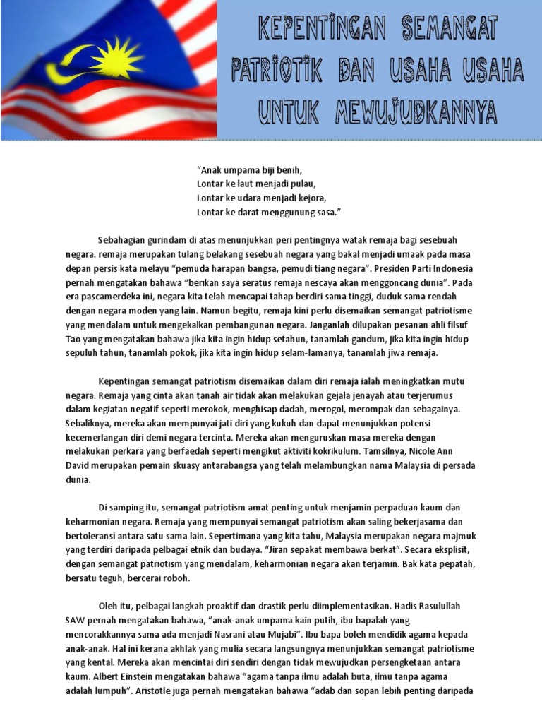 Kepentingan Semangat Patriotisme Dan Cara Mewujudkannya Pdf